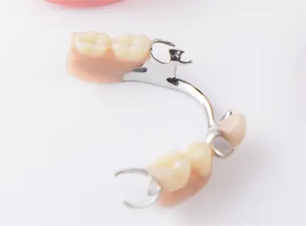 一般的な部分入れ歯には金属のクラスプ(留め具)が付いており、隣の歯に固定します。クラスプが目立つ、隣の歯に負担が掛かるなどの欠点があることから、当院ではノンクラスプデンチャーをおすすめしております。審美性や歯に負担が掛からないことをお求めのかたは、ぜひ当院へご相談ください。
